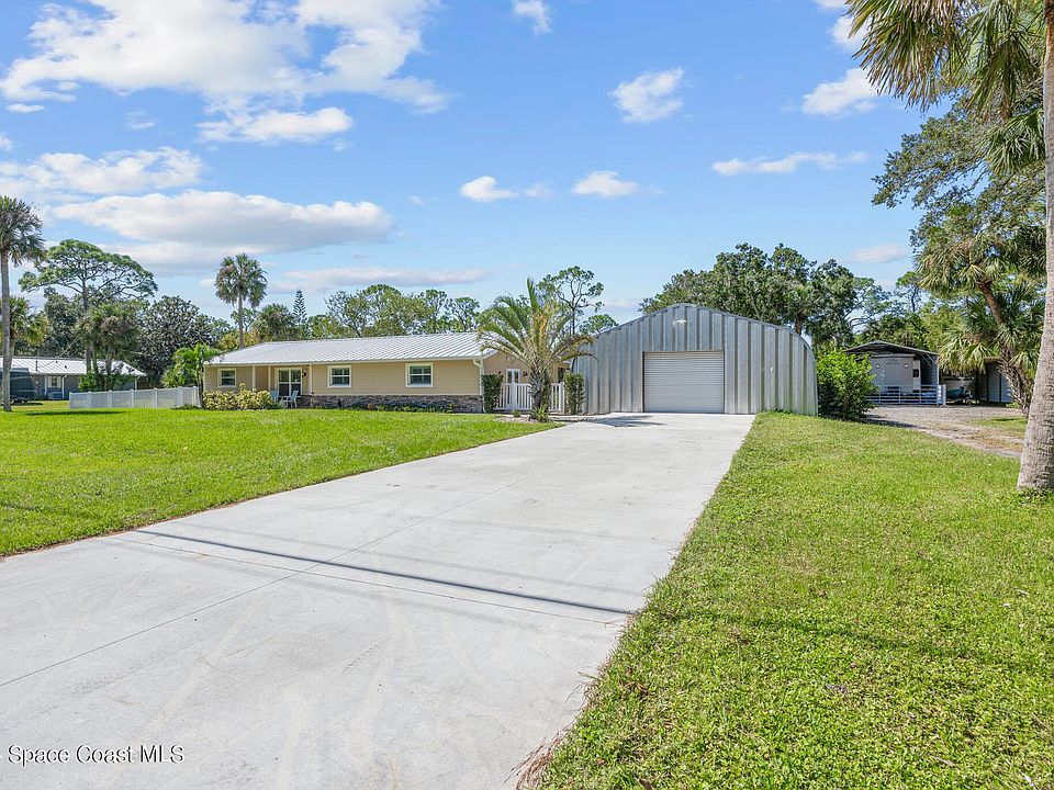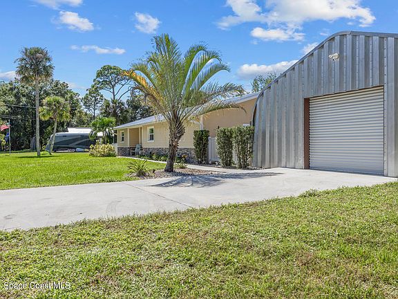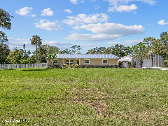 Rare find of a property located near Lake Washington on Harlock Rd. Enjoy a large piece of land with an RV pad & canopy, screened lanai w/pool, small pond operated from an artesian well, roomy home, carport AND an enormous 960 square feel workshop. NEW METAL ROOF AUGUST 2024, INTERIOR PAINT, wood burning fireplace, skip trowel ceilings and large, soaking jacuzzi tub. Enjoy the primary bedroom w/french doors to a side courtyard, massive walk in closet and roomy primary bathroom with double sinks and a very large double head shower. Open living area with travertine flooring, plantation shutters and half bathroom. Enjoy recessed lighting and Bluetooth speakers in the ceiling. Have a large RV in the back under the canopy or have c;hickens or both. This property allows for country living at its very best!!!