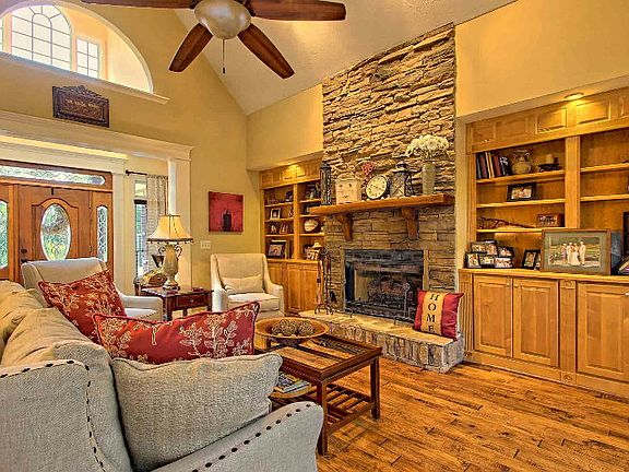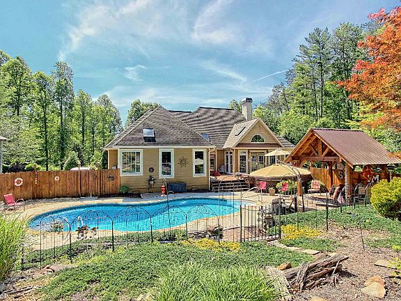 Beautiful Custom Home with wood floors, granite countertops in fully equipped upscale kitchen with breakfast bar, separate dining room with trey ceiling, large vaulted ceiling living room w/rock fireplace, wood floors & beautiful sun room. Bonus room over lg 2-car garage. Split floorplan with 2 guest rooms one one side & a large master suite on the other w/lg walk-in closet, lg jetted corner tub, separate shower. Loads of windows, very light! Master & main living area opens to spacious deck, an outside kitchen w/fireplace, large pool w/cabana all fenced & private. Outbuilding for yard equipment, Motor Home Carport. Everything beautifully landscaped, well manicured and in great condition. A move in ready home!
