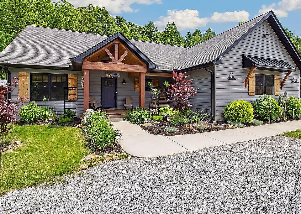 The home exudes charm in every corner. The entrance welcomes with beautiful woodwork, soaring ceilings, and beautiful landscaping. It's evident that considerable care and effort have been invested to cultivate this homestead. The thoughtful floor plan includes an open-concept living room and kitchen. The primary bedroom, situated on one side of the house, offers views of the ridge and backyard, complemented by an expansive bathroom with a walk-in shower and tub. The other two bedrooms, located on the opposite side, share a full bathroom. The back porch is a marvel, boasting ample space, high ceilings, a firepit, and landscaping, inviting one to linger and unwind. Additionally, the property houses a generous barn for storing equipment, a tractor, and implements, as well as a charming she shed. This idyllic mini farm presents the complete package for a peaceful country existence.