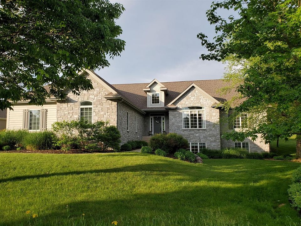 Impeccable design, construction and craftsmanship can be found throughout this custom ranch home. Sumptuous finishes include custom woodwork with high profile trim, Red Oak hardwood floors finished onsite, Anderson windows, Hunter Douglas shades, Quartz and Granite counters, and stainless appliances. A reverse design from a traditional two-story, this home has the master suite on the main floor and the additional bedrooms in the daylight lower level, providing added privacy. The open concept Great Room and Dining Room on the main floor and the spacious Recreational Room in the lower level create grand gathering spaces. The well-appointed office on the main floor may be utilized as a fourth bedroom/nursery. Additional living spaces include the formal living room on the main level with vaulted ceiling, the exercise room and the craft room in the daylight lower level, and the sunroom overlooking the back yard. Don't overlook the magnificent amount of storage found throughout this home.