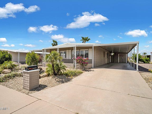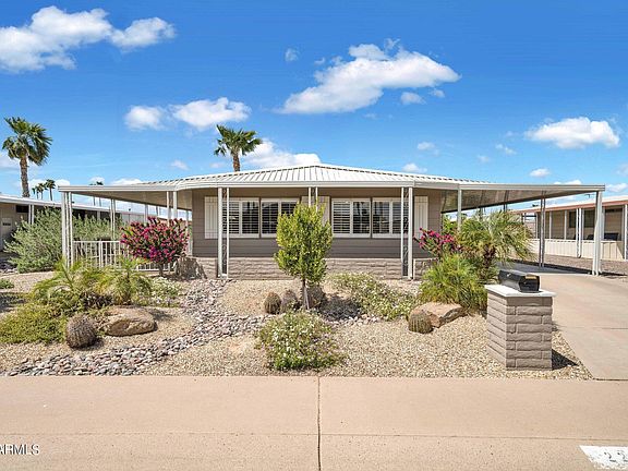 Be ready for a big surprise when you walk into this lovely home! It is a mobile home (1972), but remodeled inside to feel like a custom home! Granite countertops, upgraded cabinets, open kitchen/living area, luxury plank-style vinyl flooring. All appliances included and the furniture may be available as well. Bring your clothes and toothbrush and start enjoying carefree resort living in the fabulous Apache Wells 55+ community.