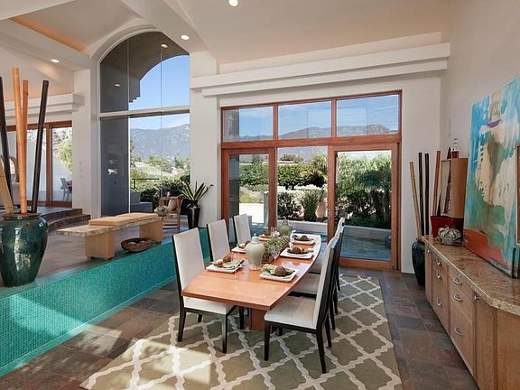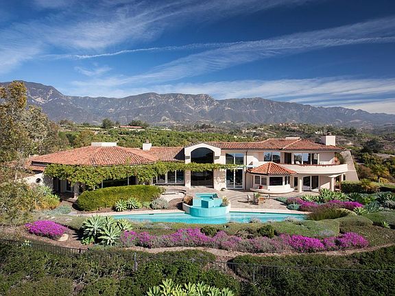 Stunning Contemporary Mediterranean estate situated on 4.88± acres with sweeping ocean, island, harbor, and mountain views. This residence is located on the premier lot in exclusive Ortega Ranch and is convenient to all one needs for the quintessential Santa Barbara lifestyle.Designed in 2001 by Richard Johnson, this architectural gem exceeds 5000± square feet, features exceptionally high quality construction, and is ideally oriented so each room enjoys magnificent views and gracious sunlight. The lower level features a ground floor master suite as well as two "en suite" bedrooms, a gourmet kitchen with large center island and granite countertops, rich cherry wood cabinets, an inviting family room with fireplace and built in entertainment center, a formal dining room, and a grand living room with an exquisite granite faced fireplace, as well as two additional powder rooms and a large laundry room. A second luxurious master suite occupies the entire upper level of the home and boasts superlative white water, island, harbor and mountain views, wrap-around balconies, a library, a kitchenette, a sumptuous master bath with separate his/her water closets, and an oversized walk-in closet.The landscape design of this amazing property emphasizes environmental awareness and features plantings with minimal water needs, low maintenance grounds, as well as a myriad of patios for enjoying the splendid views and entertaining. Meandering pathways lead to an inviting pool, spa and opulent outdoor living.Music aficionados will appreciate the Sonos sound system throughout the home, including the ocean-side pool and garden area, enhancing entertainment options indoors and out.This beautiful home is located in the prestigious, rural community of Ortega Ranch, where the beauty of Summerland and Montecito meld together. The property has direct access to the trails of the Montecito Trails Foundation and is in close proximity (one half mile) to Summerland Beach, parks and shops, as well as to Montecito's Lower Village with its excellent restaurants, upscale boutiques and beautiful beaches.