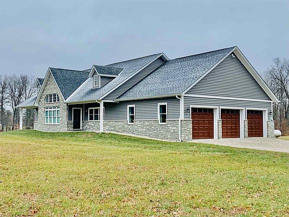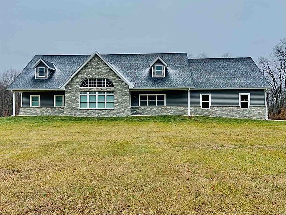Stunning energy efficient home in peaceful country setting on over 3 acres conveniently located to Bedford/Bloomington/Crane. This delightful custom built home offers an exceptional floorplan and was built with emphasis on the finest of quality features and comfortable living. Entertain in the spacious kitchen with custom cabinetry, granite countertops, separate from the large living room only by a double sided gas fireplace. Fabulous open living room with vaulted ceilings, dramatic ceiling to floor custom arched windows and hardwood flooring. Large bedrooms with walk-in closets and the primary bedroom offers an en-suite with walk-in tile shower and granite vanity countertops to finish out the main living space. Full partially finished basement with tons of possibility and an 8 X 12 all-concrete vault/safe room with vault door. There is also an additional large bonus room over the kitchen great for a large craft room or office. The oversized 3-car garage and bonus room both have a ductless HVAC setup separate from main living quarters. This home was built with ICF Construction for optimal energy efficiency, structural safety, durability and comfort. This fantastic property is locate just 15-20 minutes from Crane.