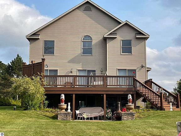 If you're wanting to live on the lake, or use this home as a possible investment property, this beautiful custom built 4 Bedroom, 3 bath home on pristine all sports Windover lake. Level water frontage to the sandy bottom lake is ideal for swimming and other lake front activities. This statuesque home is larger than it appears, with approximately 3000 sq feet of finished living space. Upon entering, you'll find a large open concept floor plan with 22' high ceilings in the great room. You'll also appreciate the gorgeous hardwood flooring and the natural gas fireplace. A main floor primary suite with a large garden tub, separate shower and bath facilities, and a large walk in closet checks off many boxes. The upper level includes a large loft area overlooking the great room, plus 3 bedrooms and a full bath. In the lower level, you'll enjoy the large gathering area, a mini kitchen, a possible non-conforming 5th bedroom, and plenty of storage. In addition, the home can be sold turn key and completely furnished right down to the silverware if a buyer so desires! Outside, the home is nicely landscaped, complete with a sprinkler system. If you're looking for an investment, perhaps consider using the basement as a rental opportunity, or when you're not using the property, rent the entire home! Windover Lake is a clear, sandy bottom lake, approximately 60 acres in size. It is considered an All Sports lake, yet it is quiet, with a dedicated Loon area. The home is equipped with natural gas and high speed internet and cable TV. Close to many other area all sports lakes, skiing, snowmobiling, fishing, hunting and biking trails. Situated on a paved road, the property is centrally located from metro areas-just minutes from M-115 and US 10, with US 127 only a little farther away-enjoy the ease of convenience for the drive here and back. Whether it is your year round home, vacation home, or income investment, this property offers many wonderful amenities.