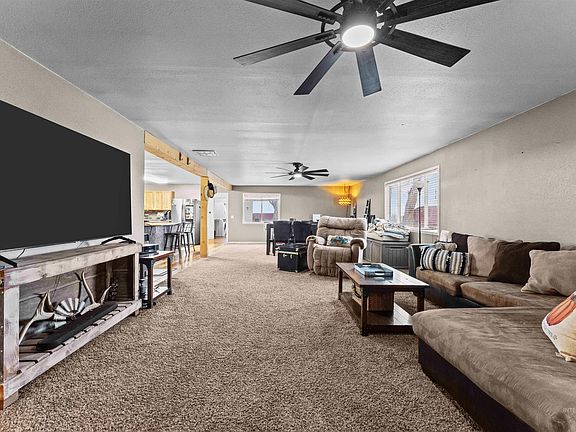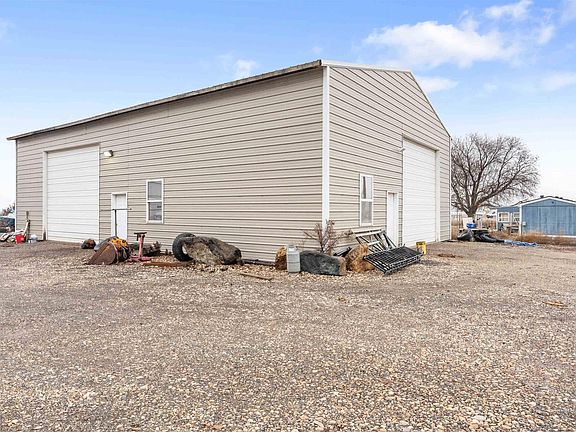 Wonderful Single Level home that sits on 6.9 Acres AND has a 60x40 shop and much more! This 4 bedroom, 2 bath home features an updated kitchen with stainless steel appliances, w/large island that opens up to a spacious living area. Wood stove, utility room w/sink, split bedroom design, covered patio, full sprinkler, fire pit, dog kennel, and mature trees. Property has full irrigation rights, 4 acres of fenced pasture w/ gated pipe. Barn with electricity, and tack room. 40x60 shop w/16 ft. ceilings and 2- 12x14 doors. RV outlet on the north side of the home. New well pump and pressure tank were installed in 2016. Home has 2- water heaters. Arena panels are included. Great location for easy is NOT a freeway access for commuting! This home is NOT a manufactured home.