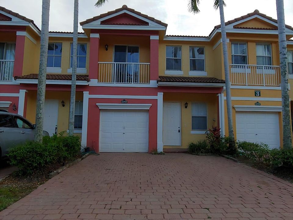 Beautiful two story lake view villa available for immediate occupancy! Split bedroom floor plan with one bedroom & one bathroom on the ground floor, and two others on the 2nd floor. All living rooms are tiled, modern laminate floors in all bedrooms & stairs areas installed just about 1 year ago, stain less steel Samsung appliances, upgraded light fixtures & ceiling fans. Master bedroom features two spacious walk in closets, double French doors entry, vaulted ceilings; master bathroom offers a roman tub, double sinks, etc. Office area / play area upstairs. Laundry room is on the 2nd floor. One car garage and a driveway for at least two cars. "A" rated school district, walking distance to Publix shopping plaza, close to parks, hospitals, FL turnpike, equestrian fields & much more! Trash removal is covered by HOA. Pets are subject to a non-refundable pet fee. HOA collects from tenants a separate refundable common area deposit of $1000 due at move in.