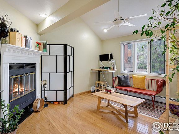 Light-filled, two-story condo in the heart of Boulder! Completely renovated kitchen with custom cabinetry and Caesar-stone (quartz) counter-tops, large kitchen island with ample storage and stainless steel appliances. Open living layout includes wood-burning fireplace, vaulted living room ceiling, recessed lighting, and custom window coverings. South and west-facing windows provide abundant natural light and two patios overlooking a quiet courtyard feature Boulder mountain and sunset views. Second floor primary suite includes private balcony, elegant primary bathroom, walk-in closet and newer washer/dryer. Walk to the Historic Pearl Street Mall, enjoy local shops and restaurants, or take a stroll along Boulder Creek. Easy bus and bike path access to CU!