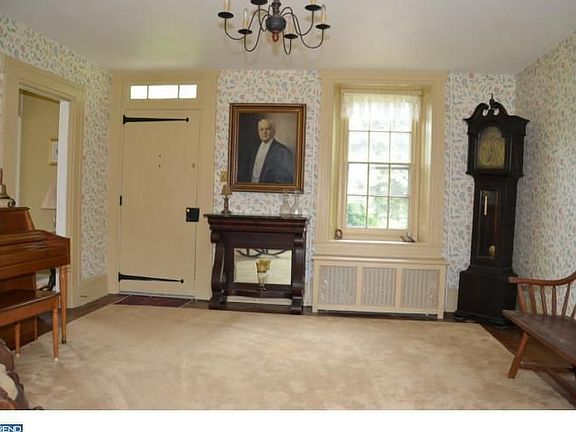 OCTOBER HILL ' Rich in Tradition: Stone and Stucco Farm style Home built in 1863 and expanded in 1895. A long tree lined driveway leads you over a stream to this 7.72 acre mini-estate surrounded by century old trees and lush gardens inspired by English landscapes. Classic mullioned wide window sills bathe the rooms in natural light. Elegant woodwork and solid random width hardwood floors throughout. A gracious large Reception Hall gives access to all major rooms. Formal LR, DR, Den/Study, Eat-in Kitchen and half-Bath encompass the first floor. 4 spacious bedrooms and 2 Updated Bathrooms are located on the second floor. A walk-up attic used for storage could be converted to additional living space. An English Pub style Family-room with oversized brick fireplace is located on the lower walk-out basement level. 2 outbuildings, one serving as a 2 car garage and the other a storage barn. For those who appreciate the timeless and uniqueness of an older home don't miss this opportunity!