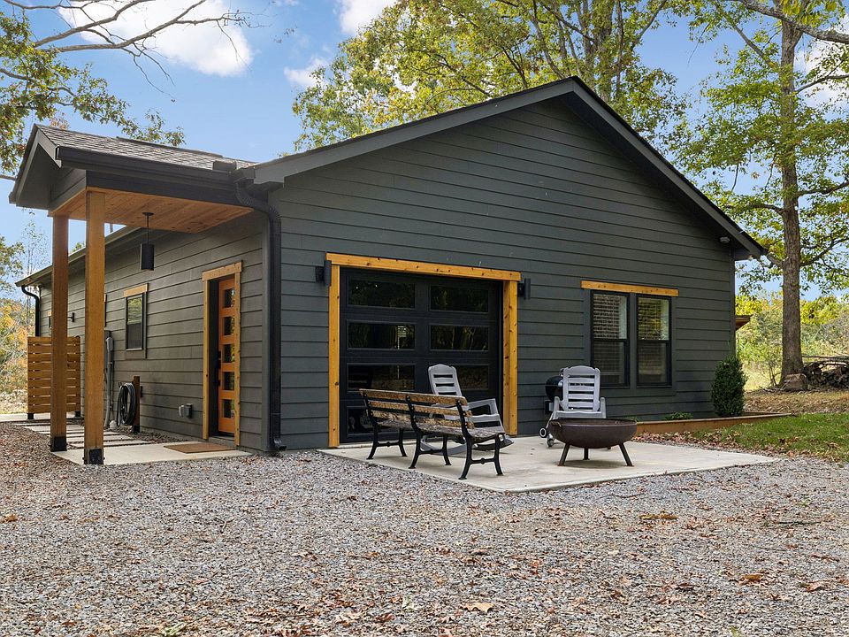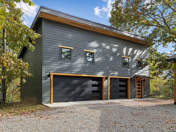 Custom Designed One Owner Home nestled just 17 minutes from Broadway~all one level living and easy to maintain~open concept floorplan and even a panoramic glass door that allows you to be one with nature all from the interior comfort of your home~vaulted ceilings in the living/dining/kitchen area~butcher block counters and farmhouse sink in kitchen~gorgeous tiled surround shower and double vanities in master bath~master suite with double closets~large laundry room~ 1550sqft FULLY HEAT AND COOLED detached garage with rec room above it architecturally designed to compliment the main home~Rockwool insullation used throughout the construction of the home~engineered trusts with 16' center built with zip system~concrete slab reinforced with fiberglass~tankless water heater~high efficiency windows~all garage doors insulated~all bordered by a creek~MULTIPLE OFFERS HIGHEST AND BEST DUE BY 10/30 12 pm