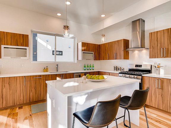 Gorgeous unit in recently built town home project 1 block from Main Street in Old Historic downtown Littleton! This unit is one of the best in the complex. Terrific walkability to main street shops, dining and light rail access. Rare 3 bedroom plus 2 car garage. Roof top deck boasts incredible mountain views from North to South and provide great entertaining opportunities with BBQ gas line connection. Clean modern finishes, gas fireplace, floating steel staircases with butcher block treads. Euro cabinetry with quartz tops in kitchen. All hardwood flooring throughout unit. Custom sinks at vanity locations. Great flex space at garage level for study/work space. Downtown Littleton has never seen anything like this unit! Additional fees for pets. Call for more detail.