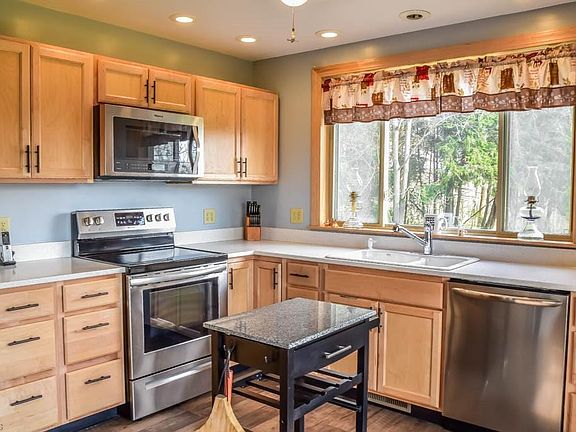 Fantastic opportunity to own this updated home on nearly 4.5 acres! This great property has a potential in-law suite plus office space to work from home in the partially finished basement. Upstairs could be used as an in-law suite with zoned electric heat to control costs, new carpet and fresh paint. Add your own finishing touches to the 12x18 kitchenette with vaulted ceiling and a pantry. Thereâs a 20x17 great room, 2 bedrooms, and full bath PLUS a laundry room too! The downstairs was gutted to the studs 4 years ago and features a new roof, furnace, A/C, hot water tank and windows! Front entryway opens to a spacious 26x13 great room/dining room boasting a gas fireplace and buffet countertops. Countertops continue in the 15x13 back family room with sliding doors to the backyard. Down the hall, there are 2 bedrooms (12x11 and 12x10) and a full bath with tile shower surround and built-in linen closet. Stunning 11x11 kitchen offers stainless steel appliances, quartz countertops, a walk-in pantry and a picture window overlooking acreage - not a bad view when doing dishes! Great home office in the finished basement with a half bath, laundry, kitchenette area and 2 offices (12x10 and 10x8). Plenty of wooded acreage to give a rural feel while being minutes from 77 & route 30. Donât miss out - schedule a private showing today!