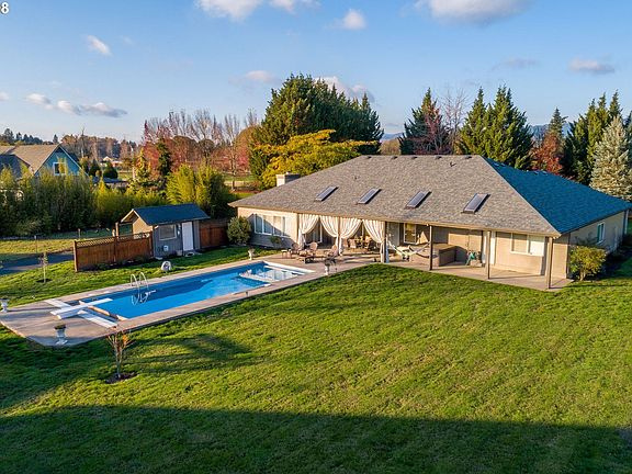 This property has it all; Unbelievable 1 level, 5 Bedrooms, 2 Bathrooms, Great Room with stunning fireplace, Dining room, Chef's Dream Kitchen with a desk workspace, 2nd Family room/Den/Office, Heated Swimming Pool, Outdoor shower, Hot tub, Entertaining area, 3 Stall Barn and Arena, Covered RV Parking and Hookup, Pond & gazebo, and a dirt track for 4 wheelers all on a level 2.4 acre parcel in wine country, minutes to downtown Newberg.