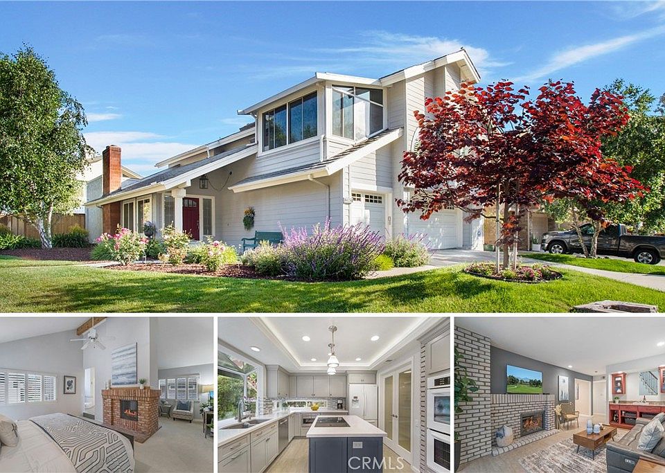 Top Quality Upgrades Inside & Out! Vaulted Ceilings with Lots of Sunlight! Huge Master Suite with Double-Sided Fireplace, Private Sitting Area, and Walk-Out Deck! Main Level Bedroom/Home Office! 3-Car Garage! Surface Streets to Irvine Spectrum and Just 20 Mins to Laguna Beach! This spectacular home was meticulously renovated with quality, functionality, and sustainability in mind (not a cheap flip). It offers the perfect balance of square footage between the large bedrooms and living spaces. The large corner lot offers the ability to easily fence in the side yard to further expand your outdoor living space. With modern style and quality construction, the fully remodeled kitchen features new cabinets, a large island, quartz counters, and a custom tile backsplash. Appliances include a KitchenAid double oven, Bosch Cooktop & Dishwasher, and microwave drawer! Also located on the main level is the fifth bedroom (currently an office), full bath with therapeutic walk-in tub & shower, and dedicated laundry room. Upstairs is where you find the large master suite with vaulted ceilings, private sitting room, dual-sided fireplace, and the spa-inspired master bath. The master bath features a custom tile tub and shower, dual sink vanity, and mirrored closet doors. Down the hall from the master suite are three additional bedrooms and another full bath. The two spacious end bedrooms feature vaulted ceilings with one having a fun bonus room and walk-in closet. Be on the lookout for the extra storage room/craft room (second floor)! This home also has THREE fireplaces! The spacious outdoor patio can accommodate casual seating, dining, and gathering areas. Additional upgrades include a long-lasting steel tile roof, exterior cement fiberboard siding, dual pane windows, custom interior handrails, custom built-in shelving, motorized shade over breakfast nook, garage storage, and so much more! The HOA is the Lake Forest Community Association which offers swimming pools, lagoon, kids beach, sports courts (tennis, pickleball, volleyball, basketball), fitness center, and clubhouse. Nearby is the popular Veteran’s Park & Duck Pond. Lake Forest is quickly becoming a hot destination for families looking to have more space while still being close to Irvine and a short drive to world-class beaches. Lake Forest has excellent sports parks, biking & hiking trails, and schools. Just blocks from this home is Santiago STEAM Magnet Elementary School and Oxford Preparatory Academy.