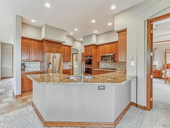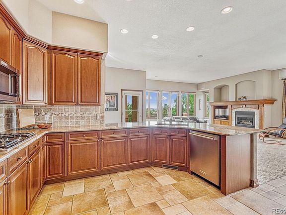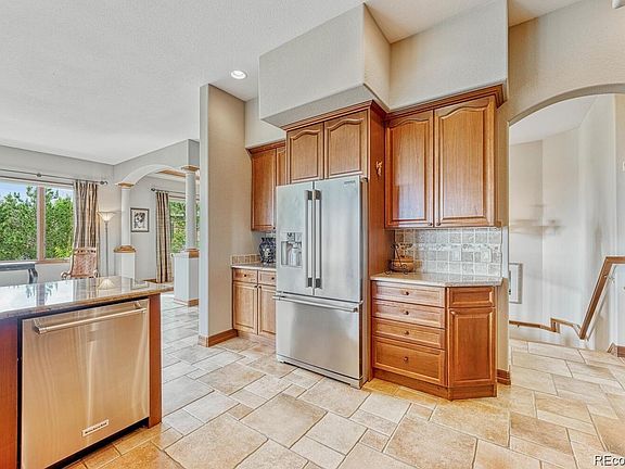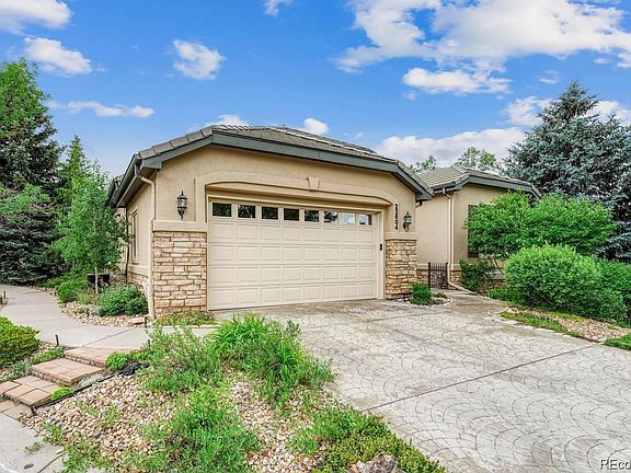 Enjoy this amazing Ranch with a walkout basement in the Saddle Rock Golf community. Open floor concept with main floor living includes an updated kitchen, dining area, and living room with amazing views, huge pantry, and laundry room. The sizable primary bedroom boasts beautiful morning light, a walk-in closet, and a 5-piece bath. An additional guest room and full bath finish out the main floor of this easy living home. The walkout basement is complete with 2 additional bedrooms a full bath and a giant family room with a built-in bar. Access to the pool and tennis courts are included. A finished 2-car attached garage that has heating and A/C. Dual HVAC systems for efficiency, easy access to the 470, Southlands Mall, shopping, amazing views, location, and great schools.