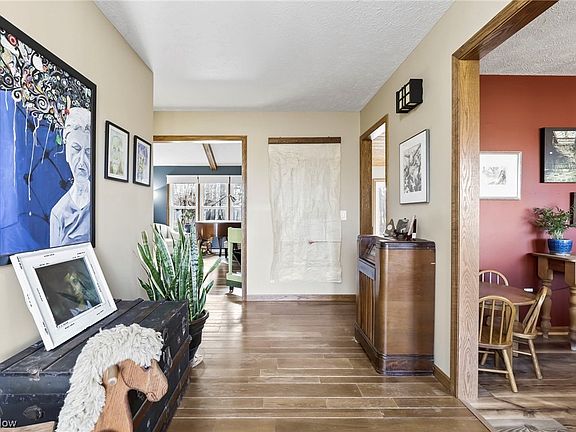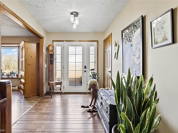 Beautiful, well maintained brick ranch in Ontario local school district. This sprawling ranch offers 3 bedrooms 2 full and 1 half baths. An eat in kitchen open to the living room and perfect for entertaining. The owner's suite offers a large attached bathroom and access to the outdoors. Outside is a nature lover's dream. Situated on just over 5 acres and backing up to Twin Lakes golf course; a serene spot enjoy your morning coffee and views on the brand new composite deck. Enjoy your walks on the gorgeous one acre cut grass labyrinth sewn with native wild flowers. This home has many updates, including new paint throughout, plumbing, septic and electrical updates . New furnace and central air, new appliances, quartz countertops, flooring, new windows and doors throughout, chimney upgrades and a high efficiency indoor wood burner. This is the perfect home to move right into and relax.