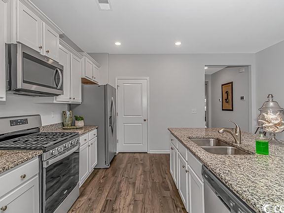 Beautiful 3 BEDROOM 2 BATH home with wonderful LAKE VIEWS! This 1 Story Open Floor Plan makes Beach Life easy breezy! Off Hwy 90 & convenient to International Drive, Highway 31, Highway 17 & Highway 22! Beautiful white kitchen cabinets, stainless steel appliances (INCLUDING REFRIGERATOR), Gas Range (natural gas); large kitchen island with Granite Countertops & also a walk-in pantry! Great storage areas throughout! Durable laminate Flooring in main living areas! Lovely Dining Area with BEAUTIFUL LIGHTING FIXTURE. Wonderful SCREENED-IN PORCH with a ceiling fan, to enjoy the beautiful LAKE VIEW. You will also love the EXTENDED PATIO for grilling & taking in the Carolina sun! Master Suite has a beautiful view as well, a walk-in closet, large double sink vanity, walk-in shower with a seat, spacious water closet & also a sizable linen closet! Conveniently located Laundry Room with WASHER & DRYER! Smart Home technology that you can control from your own phone! Tankless Hot Water Heater... Come & take a look at all this home has to offer Only approx 7-10 miles to both local Tanger Outlet locations, wonderful area Supermarkets, Restaurants, Medical facilities, beautiful BEACHES & historical downtown Conway!
