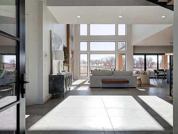 The main level features an open-concept floor plan highlighted by a stunning floor-to-ceiling custom fireplace. The gourmet kitchen is the heart of the home, showcasing an oversized island, 8-burner gas cooktop, separate flat top griddle, butler’s pantry, bar area, and an additional walk-in pantry. A spacious laundry room with a custom dog washing station and convenient yard access adds both style and practicality. The main floor also includes a guest bedroom with a private bathroom and a well-appointed office. Hidden away, you’ll find a secret room with private patio access and a hot tub hookup, offering a peaceful retreat.