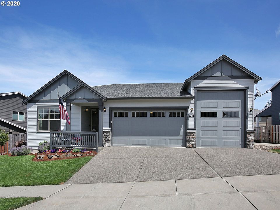 Modern single level home with storage for RV or boat in very large garage and features low maintenance landscape. Main bedroom has attached bathroom with walk in closet. Hardwood floors span majority of the home with carpet in 2 of the 3 bedrooms. Enjoy mountain views from the front porch or the HOA clubhouse, park like common space, basketball court, and pool.
