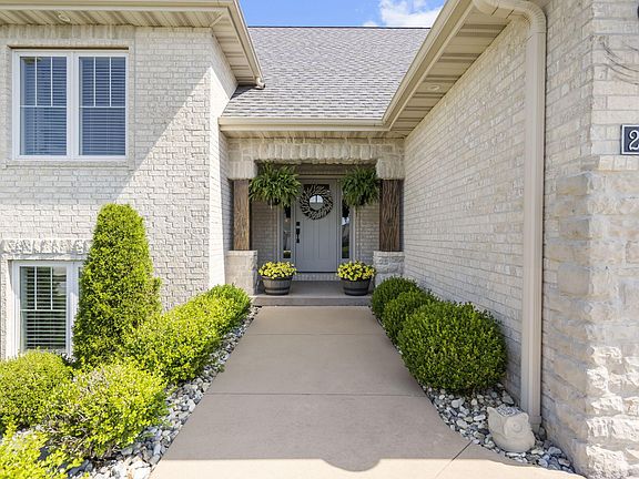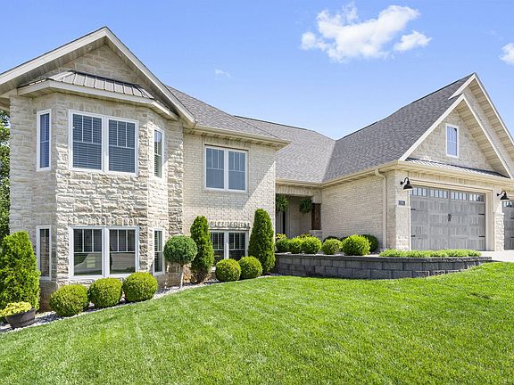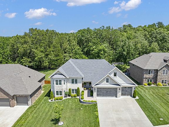 Welcome to this meticulously maintained, custom-built, one-owner home, constructed in 2018. Located in the desirable subdivision of Wild Horse, this exquisite brick and stone split-level residence offers 5 bedrooms, 3.5 bathrooms, multiple living areas and a 3 car garage. Upon entering, you'll be captivated by the high ceilings and the elegant hardwood floors with beautiful tile inlays. The open-concept design seamlessly connects the living spaces, creating an inviting atmosphere. A striking stone dual-sided fireplace serves as a central feature, providing warmth and ambiance while elegantly dividing the living room and the gourmet kitchen. The living room offers ample space for gatherings, with large windows allowing natural light to flood the space. The kitchen is a chef's dream, boasting an oversized island. Features include dual wall ovens, a cooktop, and a spacious pantry. The quartz countertops and custom lighted cabinets, complete with deep drawers and custom pullouts, add both style and functionality. The primary suite is a true retreat with high ceilings and plenty of natural light. The ensuite bathroom is luxurious, featuring an entire wall with a double walk-in fully tiled shower, a soaker tub, dual vanities, a toilet closet, & a large walk-in closet with built-in cabinetry, providing ample storage and organization. The walkout basement features two additional bedrooms, a full bathroom, and a large entertaining space.It opens directly to the backyard, creating a seamless indoor-outdoor living experience. The private backyard is bordered by a treeline that offers both beauty and privacy. The covered back patio is perfect for outdoor dining or relaxing. A 2nd patio area is prepped with a hookup for a future hot tub. This stunning split-level home combines luxury, comfort, and modern amenities, making it an ideal choice for discerning buyers seeking a high-quality, well-maintained residence. This home is sure to impress!