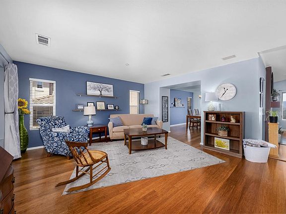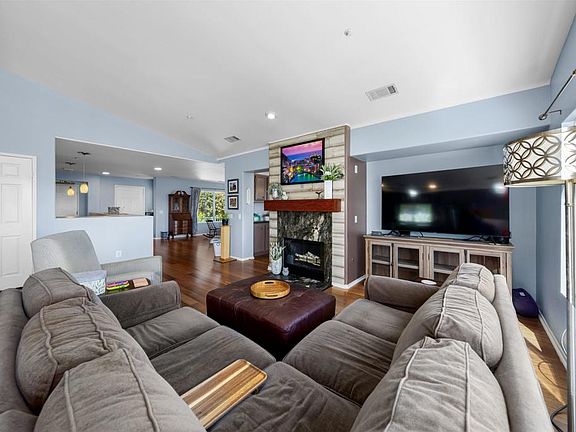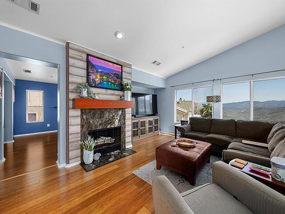 Step into luxury in this beautifully updated 4+ bedroom, 3 bath home that shows like a model! Located in a highly sought-after gated community, this residence offers comfort, style, and functionality with an open floor plan, multiple living spaces and bamboo flooring throughout the main living areas, perfect for both entertaining and everyday living. The heart of the home is the updated kitchen, complete with stainless steel appliances, leather granite countertops, and a seamless flow into the family room, where you’ll find a cozy fireplace, soaring high ceilings, and walls of windows that flood the space with natural light and showcase stunning views. A bonus room provides flexible space and could easily serve as a 5th bedroom, home office, or playroom. Retreat to the spacious primary suite featuring dual walk-in closets, a beautifully appointed ensuite bath, and private access to the back patio—perfect for quiet mornings or evening relaxation. The additional bedrooms are generously sized, offering comfort and privacy for everyone. Enjoy great views and a meticulously landscaped yard, ideal for outdoor gatherings. This energy-efficient home also includes solar, a new A/C and heating system, and fresh exterior paint for a move-in ready experience. Don’t miss this rare opportunity to own a spectacular home that blends elegance, practicality, and modern upgrades—all in a secure, prestigious community.