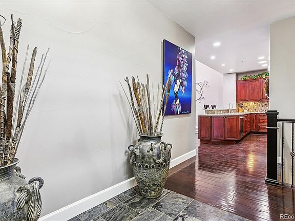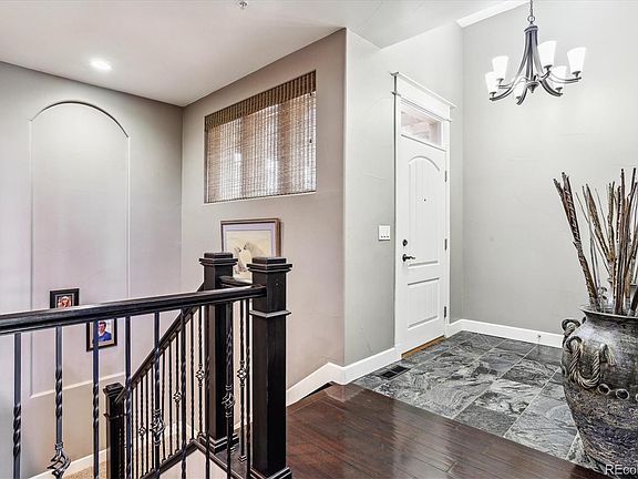 This spectacular ranch floorplan welcomes you to homeownership at Verona Highland's 55+ community! Highlighted by custom finishes and numerous upgrades throughout. Start your tour at the front entrance w/polished slate flooring. The kitchen tour includes high-end quality w/soft close cabinets & drawers, granite counters, wood flooring, stainless steel Dacor gas stove/oven/microwave to make your meal preparation highly enjoyable! Significant granite counterspace spills over to bar stool seating so you can oversea the entire dining & living spaces. The custom coffered ceiling is a designer's dream including the enhanced floor-to-ceiling limestone faux wall. Step out onto your private balcony and take in the sights and sounds overlooking the Highline Canal. Mornings or evenings can be spent relaxing and enjoying views of McLellan Reservoir with sunset mountain views! The back patio has a water spigot and includes the gas grill. The main level primary bedroom overlooks the same view backing to trails and trees! The 5-piece primary bath has elegant marble & granite including flooring, counters, the shower bench and walls! Step into the custom walk-in closet with organizational layers throughout. Make your way downstairs to the finished walk-out basement for a second living space; second bedroom and full bath. Elevate your entertainment events with the custom built bar which includes an ice maker and wine cooler. The walk-out level is steps away from your soothing and private hot tub spa under the Colorado starry nights! Drive into your oversized 2-car garage with non-slip epoxy covered flooring & water spigot for hose access. Minutes to C-470, shopping, dining, movie theatres and local breweries. This low-maintenance lifestyle can't be beat. Basic DISH Network and snow removal to your front door is included! Hurry to see this special home. You'll be glad you did!