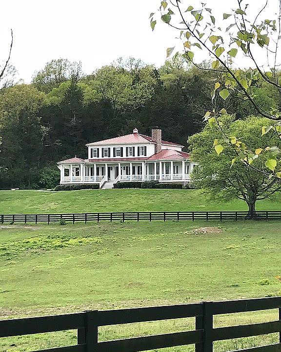 10 acres north of Franklin, Cool Springs area. Pretty rolling land. 5 BD, 7 BA ranch. Magnificent trees, landmark Red Horse Barn, six stalls, hay loft, storage.