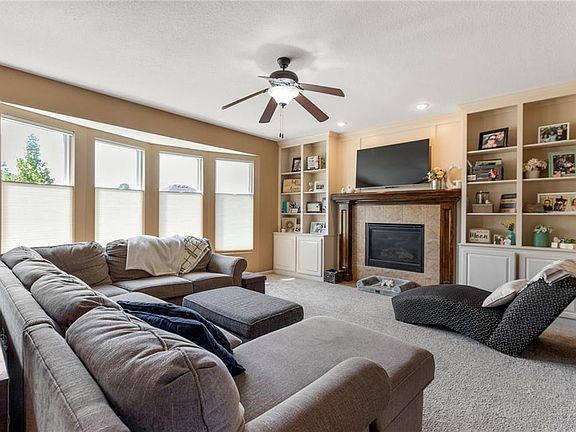 - Features: Built-in Features, Carpet, Ceiling Fan(s), Fireplace