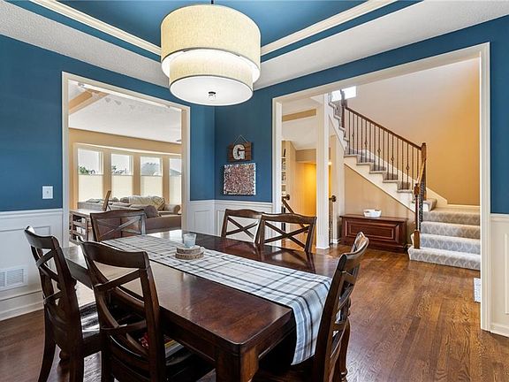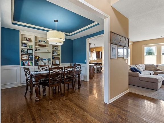 JUST REDUCED! Priced well under market value for a quick sale! GORGEOUS FORMER MODEL HOME--TRUE 5 BEDROOMS EACH WITH A WALK-IN CLOSET! Fantastic home for entertaining with open floor plan seamlessly connecting Great Room, Kitchen, Dining & Breakfast Nook. Inviting Great Room has fireplace flanked by built-ins. Delightful Kitchen includes eat-in center island, granite countertops, tons of cabinets, pantry and stainless steel appliances. Deck off the breakfast nook is perfect for BBQs! Upstairs find the primary suite complete with tray vault ceiling, en-suite with garden tub, separate shower and generous walk-in closet. 3 more bedrooms, 2nd full bath and convenient laundry room complete this level. Finished basement showcases a large Family Room with wet bar, built-ins, 5th bedroom and 3rd full bath. AWESOME LOCATION just minutes to Lake Olathe, Shopping, Dining and Major Highways! WELCOME HOME!