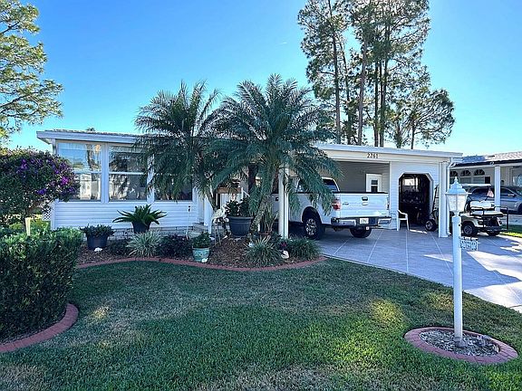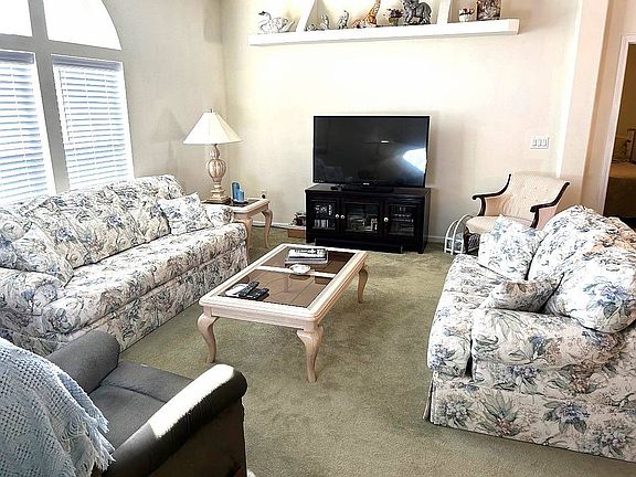 2BR 2BA 1316 sg ft Furnished This home is ready to move in to. Beautiful new kitchen cabinets and counter tops, new laminate floors. New dishwasher, microwave and garbage disposal, master BR has huge walk-in closet. Guest BR has an over sized closet. Home offers plenty of storage space including 2 linen closets and large pantry. New AC in 2018, New metal roof, irrigation pump is newer. new hot water heater in 2018, Inside laundry room, AC and carpeted Florida Room on front of the home. nice golf cart garage, Golf cart included.