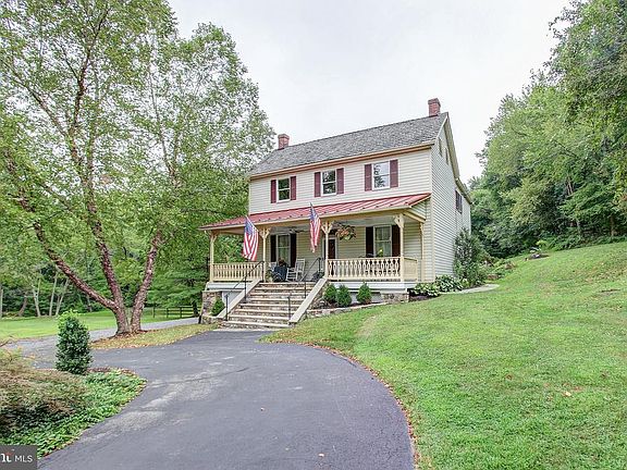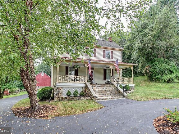 Gorgeous farmhouse situated on 35.6 Acres! This property features stately circle driveway and lush grounds surrounded by woods. Home features 4 bedrooms and 2.5 bathrooms. The main level has formal dining room with wood burning fireplace. Formal living room. Eat-in kitchen with granite counters and lots of storage. Huge family room at the back of the house with another wood burning fireplace. Upper level features private master bedroom with exposed beams and loft. Walk-in closet and ensuite bath with soaking tub. The basement features private office with separate entrance perfect for a home business or working from home. Renovated barn on the property with workshop great for contractors and additional loft space perfect for entertaining. Separate cabin with working utilities, deck and fireplace. Minutes to major commuter routes and public transit. Marc Train Station 1.5 Miles! This property is one of a kind. Don't forget to check out the 3D tour.