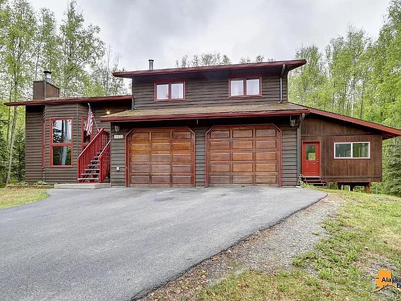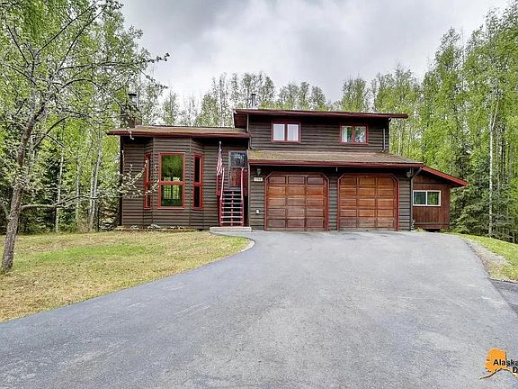 This beautiful home sports a newly updated kitchen, equipped with plenty of cabinet space as well as a drink fridge to supplement the main refrigerator. It flows into the dining area, complete with a built-in window bench with a great view of Bear Mountain. Sliding doors out to a large deck provide a perfect indoor-outdoor dining option in the summer. The formal living space has huge picture windows with views of the front yard, while a large fireplace adds warmth and coziness to Alaska's winter nights. Upstairs, are three bedrooms. The master bedroom boasts an ensuite bathroom, sliding glass doors to a private deck and two closets. The other rooms are spacious with easy access to the full bath on the same level. The lower levels have a laundry room with a half bath (note: washer and dryer NOT included), a bonus office or den, a sunroom wired to accommodate a hot tub (tub not provided), access to the 2 car garage, and a large family room with built-in storage. Sewer and water are included with the lease. Tenant is responsible for all other utilities, including snow removal. Washer and dryer hookups in the laundry room. House does not come with a washer and dryer. No Smoking. All applicants must submit to a credit and background check as well as meet the required monthly income.