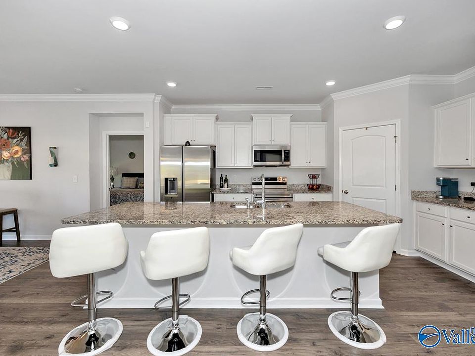 - Features: 9’ Ceiling, Crown Molding, Eat-in Kitchen, Granite Counters, Kitchen Island, Pantry