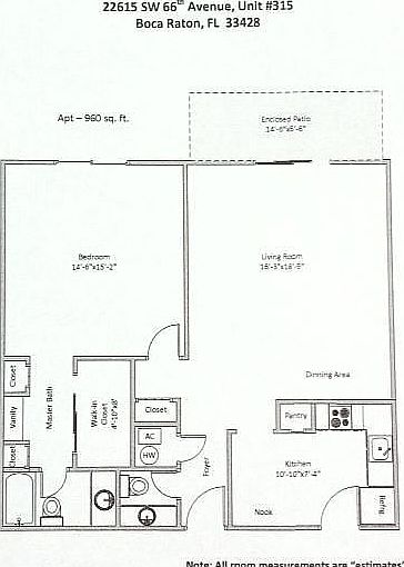 Beautifully remodeled, clean apartment for rent: $1,500 monthly and a non-refundable application fee of $195. This is a one-bedroom, two-bathroom apartment (960 square feet) located in quiet, very walkable area, on third floor. Close to banks, supermarkets, restaurants, gyms. Safe entrance through secured lobby; spacious master bedroom with walk-in closet; large, screened patio; community pool and barbecue area; designated parking in front. Water, sewage, garbage, basic cable, and pest control included. Coin washer and drier in the building (apartment has no private washer and drier). Requirements: 1. First, Last, and Security. 2. Household Income: $45,000 or more. Proof of income (at least 6 months on the job, and last 4 pay stubs) and employer's information (name, address, and phone number). 3. Credit Score 660 or higher. No criminal record, no bankruptcy, no evictions. 4. No smokers, no pets. Please only clean and responsible people that meet these 4 requirements need apply. Showings: any day of the week between 12:00 PM and 6:00 PM.