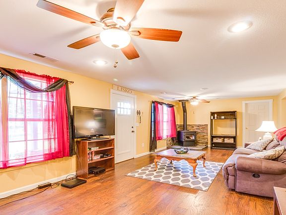 - Ceiling Fan(s), Eat-in Kitchen, None, Split Bedrooms, Walk-In Closet(s), Wood Burning Stove