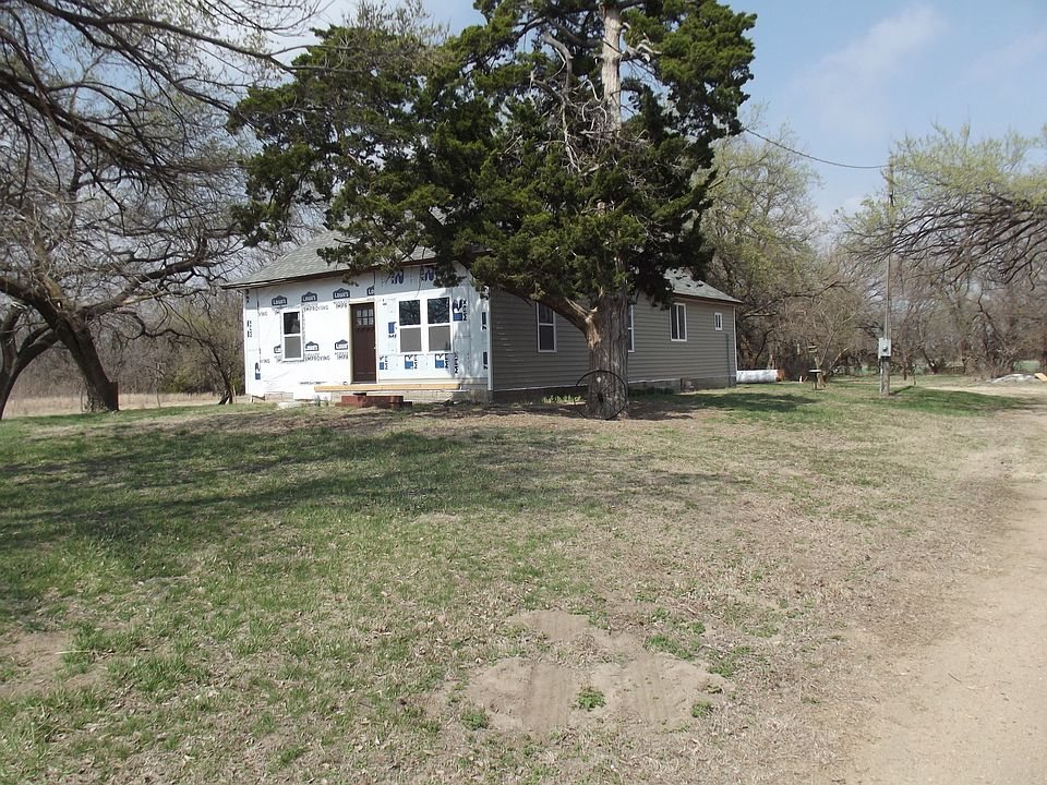 This 2 BR bungalow has a great start with all new window, shingles, vinyl siding, and Trane HVAC heat pump. The MBR has walk through closet to the bath room that is almost completed with tile flooring. The living room has a great looking dark stained pine floor and a wood burning stove that can reduce a small heating bill even more. The huge kitchen can be finished to your choosing. The back door has a small foyer that opens to what could be a mud room or office with a walled off laundry room. The front of the house is awaiting a porch with siding ready to be put up. Original Victorian doors and trim have been kept and ready for refinish and re-installation if you choose. This is an excellent opportunity to have that small home in the country with 4.45 acres.