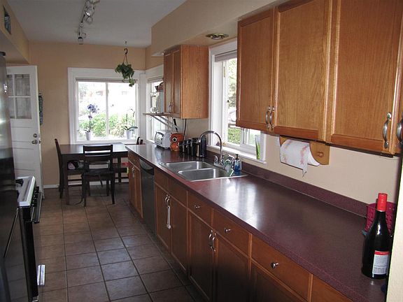 This is a great Group 11 Duplex. The kitchen has been updated - Corian countertops, new cupboards, stainless steel double sink with new faucet, heightened ceiling with recessed lighting - and opened up to living room. Sunroom added that is NOT included in square footage but provides a great 273 sq ft additional living space - bright, sunny, useable. Includes wood burning stove in sunroom. Beautiful tile flooring in kitchen, carpet in living area and upstairs. Three good sized bedrooms upstairs with large closets. Large remodeled full bathroom. All windows replaced with double paned windows. New water heater 2008. Beautiful private yard with paved tiers, landscaping, patio and large shade tree. Custom made quality large shed. Beautiful flower bed and new cement walkway in front. One official off-street parking spot. This home is well loved & maintained and ready for it's next attentive owner!
