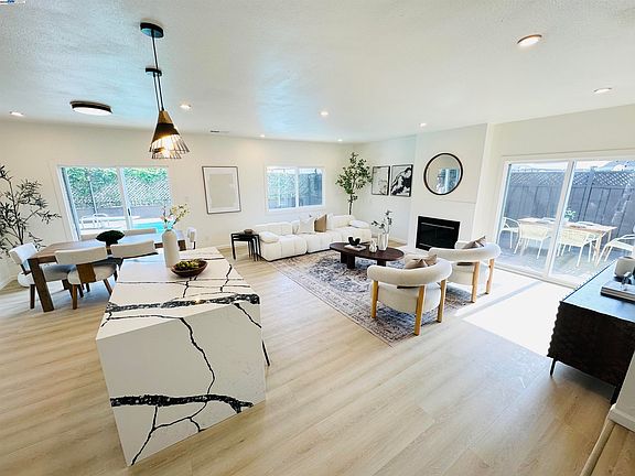 Beautifully Remodeled San Leandro Home with Pool. Step into this stunningly remodeled 3-bedroom, 2-bath home featuring a sparkling in-ground pool and spacious two-car garage. The open-concept layout seamlessly connects the living room, dining area, and modern kitchen, creating the perfect space for both relaxation and entertaining. Every detail has been thoughtfully updated, including fully remodeled bathrooms, a brand-new roof, all-new electrical wiring, and a new heating system. The backyard is an oasis with a newly repaired swimming pool and plenty of room to enjoy outdoor living, all just moments from the bay shoreline breezes. Conveniently located in Marina Faire neighborhood near new shopping centers, the beautiful Marina Park, and with easy access to I-880 for smoother commutes, this turnkey property is move-in ready. All that’s left is for you to create a lifetime of memories.