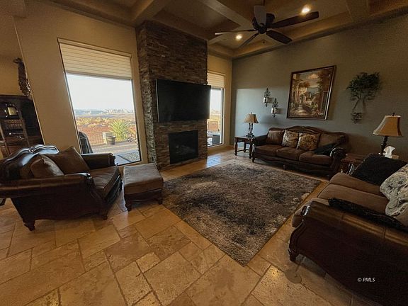 REDUCED AND READY TO SELL...Newer Custom Built Lake View Home..This home is a luxury home with both 12' and 10' ceilings. Beautiful double metal doors enter into home with great lake views right thru the door. Living room has 12' "box" ceiling, travertine floors, gas fireplace and 10' tall windows to enjoy the views. Open kitchen with upgraded granite/quartz counter tops, custom kitchen, thermadore appliances custom cabinets with soft close doors/drawers and island for informal dining and entertaining. Large dining room with lake views and room for a 12' table. Master Ensuite is a beauty with soaring ceilings, huge bathroom with double vanity, 7' soaker tub, large walk-in shower and walk in closet with room. Second master bedroom is large, room and on opposite side of the home. Third master is a Casita Room with travertine floors, mini-split heating/cooling unit, large bathroom with shower and walk in closet. Covered back patio plus paved additional patio/viewing area. Great views of the lake, mountains, bluffs and desert. Call me today for an appointment to see this home