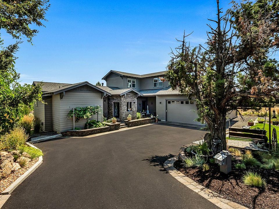 Thoughtfully positioned on a natural rim rock and nestled amongst striking landscaping and old growth juniper, you will find one of Eagle Crests most striking master pieces! Enjoy seclusion, adjacent public lands, three separate outdoor living spaces that include dramatic views of the High Desert and unique/one of a kind finish work. Expansive floor plan features oversized picture windows that capture natural light, and all main level living. Centered on a chef's kitchen with custom concrete counter tops, tile backsplash & trendy light fixtures, main level also includes dramatic cultured stone two sided fireplace, deluxe master suite, and dog shower! Throughout the home you will find custom cabinetry & finishes including a mine cart sink in the powder bath. Upstairs features private guest wing, 2 separate en-suites with an office area and coffee bar for guests. Impeccably maintained for the discerning buyer with quick access to golfing, the rec center, hiking trails and dining.