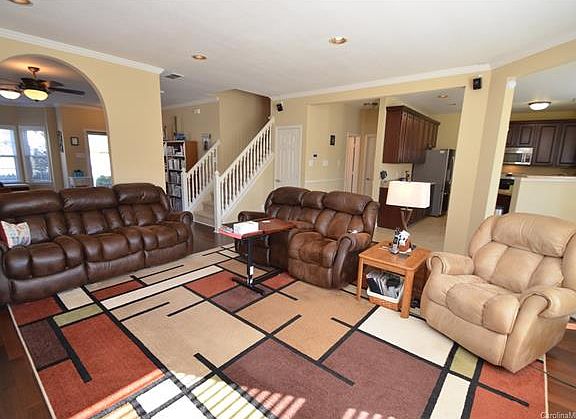 Lovely 3 Bedroom 2.5 Bath home with stunning hardwood floors, cherry cabinets, new lighting, blinds at every window, and 9' ceilings located in Baden Village, Fort Mill, SC. Open Floor Plan! Bay Window in Living Room, Built-in entertainment center in Great Room, Ceramic tile in Kitchen, Laundry Room and all Bathrooms! Stainless Steel Appliances w/gas range! Ceiling Fans! Spacious Master BR Suite w/sitting area, large walk-in closet! Move in ready! Desirable Fort Mill! Level lot with wooded view! Buyers Agent to confirm school assignments. Baden Village is a community located in Fort Mill right off of A.O.Jones Boulevard, just behind Nation Ford High School. From Baden Village, uptown Charlotte is only a 25-minute drive. Baden Village is part of Regal Manor HOA and the amenities include a large swimming pool, playground, beautiful clubhouse and a nearby pond. Fort Mill boasts a great tax rate!