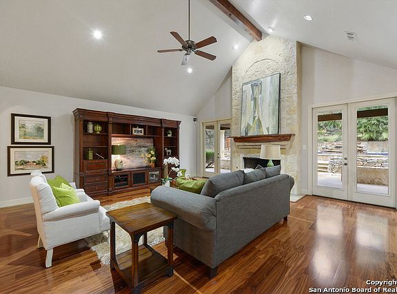 Southern Charm surrounds this absolutely gorgeous home! A total new look with interior painting, light fixtures and professional staging! Study and dining room both have double doors that open to the front porch. Gourmet kitchen with Viking over and range for gas cooking, additional electric oven and microwave. Master ensuite is warm and inviting. The master closet is fit for a Queen! Crazy Big! Family room overlooks the luscious landscaping and pool area. Guest Suite is down. Media and Game up