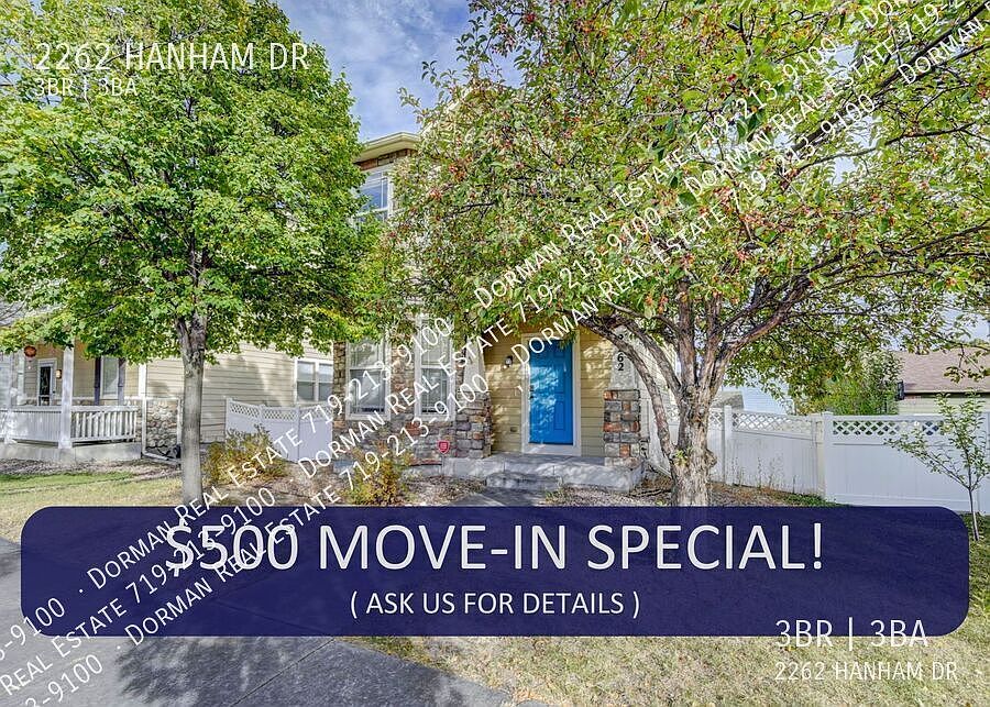 The owner of this property is offering a special incentive of $500 off the first month of rent! Please contact us if you have questions. 2-story home located in Spring Creek with mountain views! This home features luxury vinyl planking on the main level. The living room flows into the dining and kitchen areas. The main level also has a laundry area, half bath and walk out to the backyard. The upstairs includes a primary suite with private bath and walk in closet. The two final spacious bedrooms and a bathroom complete the upper level. The backyard features a patio, shed and access to the detached two car garage. Close to I-25 and I-24 interchange, military bases, schools and shopping. Please check out our application handbook by copying and pasting the link below in your web browser http www . dormanrealestate. com /preapplicationpacket Please read Carefully. Please remove spaces when inputting in your web browser COLORADO HB23-1099 DISCLOSURE: PROSPECTIVE TENANTS HAVE THE RIGHT TO PROVIDE TO DORMAN A PORTABLE TENANT SCREENING REPORT, AS DEFINED IN SECTION 38-12-902 (2.5), COLORADO REVISED STATUTES; AND IF THE PROSPECTIVE TENANT PROVIDES DORMAN WITH A PORTABLE TENANT SCREENING REPORT, DORMAN IS PROHIBITED FROM: 1) CHARGING THE PROSPECTIVE TENANT A RENTAL APPLICATION FEE OR 2) CHARGING THE PROSPECTIVE TENANT A FEE FOR THE LANDLORD TO ACCESS OR USE THE PORTABLE TENANT SCREENING REPORT. While Dorman does accept compliant portable screening reports as defined by HB23-1099, which would result in no application fee being required (or possibly an application fee refund), we do still require that all tenants complete our application (click APPLY next to any property on our list of properties below). Additionally, you will be deemed qualified (or not) based on the screening information/data provided on our independently pulled report, not based on information/data on your portable report. Please note that bona fide and compliant portable reports MUST come directly from the consumer reporting agency. 2 Car Garage 2 Pets Central Air