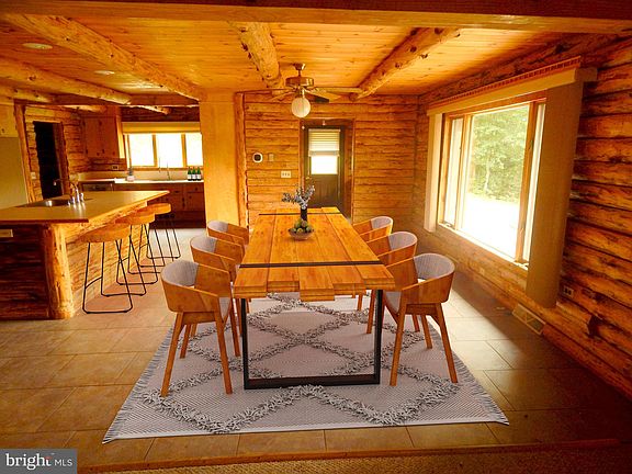 Unique Log Cabin on Large 7.3 Acre lot. Main level has 3 Bedrooms with private bathroom for each. The upper Loft area could be Bedroom 4 and has a private Bathroom. 4 Car Attached garage and plenty of additional parking.