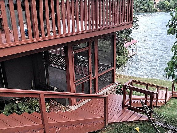 Cherokee Lakefront Home. 4br 3ba with some of the best views in Tennessee, lots of deck space for entertaining and a covered dock with a sun/party top valued at $30,000. Ranch style home with full finished basement, both levels offer a full kitchen. Main level has 2br 2ba living/dining area with huge deck and wood burning fire place. Lower level 2br 1ba living/dining/laundry with a screened porch and a wood burning stove. This home has been very well maintained and is move-in ready, great potential rental income as well. Call for showing: 865-850-5438 865-438-1079
