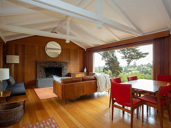 ebparks.org/parks/redwood). Rockridge BART is also a short drive. Also in close proximity are some of Oakland's top rated schools. This traditional style home features a flexible floorplan - main entry, living room, dining area, kitchen, and two bedrooms with one bathroom are upstairs. The master, laundry room, and den are downstairs. Unit Highlights Include: - Hardwood flooring throughout most of the main level - Beautifully stained exotic wood accents throughout the living room - Built-ins throughout - Living room with vaulted ceilings and custom fireplace - Laundry room with newer appliances - Large yard with level patio, fire pit, and play areas. Additional outdoor spaces include a large deck with room for barbeque and outdoor dining - Monthly yard service included