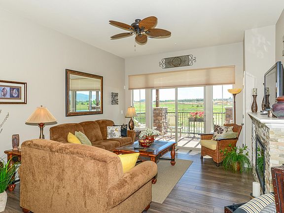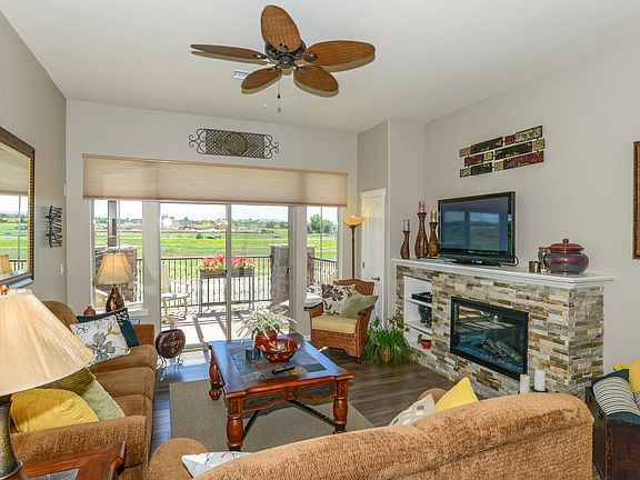 Fabulous spacious 2 bd. 2ba. Condo in Verona. Enjoy one level living in this lock and leave 55+ community with plenty of trails off the Highline Canal. Terrific open floor plan with views from every room w/extra-large windows. Soaring 10' coffered ceilings make this unit open and there is plenty of natural light. Gorgeous kitchen w/granite countertop, custom stone backsplash, gourmet gas cooktop, upgraded cabinetry and stainless steel appliances. Elegant lighting and 6" plank laminate flooring thru-out, office nook and wired sound system. Beautiful stone around fireplace and in office area. Enjoy the Pergola covered deck with Trex deck & views of the mountains. Elevator access, 2.5 tandem garage with dedicated entry and extra storage. Inviting master suite w/lovely bath area and huge closet. Large pantry, Guest bedroom with easily accessed bathroom. Across from McClellan Reservoir, Highland Canal and minutes to restaurants, golf and shopping. Active community and social events.