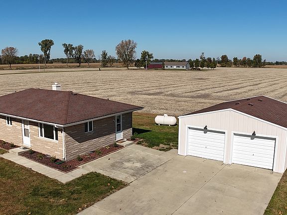 Cozy brick ranch home in the country! 2 bedroom, 1 & 1/2 bath with 1008 sq ft. of living space. Efficient eat in kitchen with breakfast bar, plenty of cabinets and neutral countertops. Full bath has been fully updated. Nice size bedrooms with ample closet space and primary bedroom has 1/2 bath. All new paint and flooring throughout. Outside you will find a 2 car detached garage and large yard to add your own patio to enjoy the outdoors.