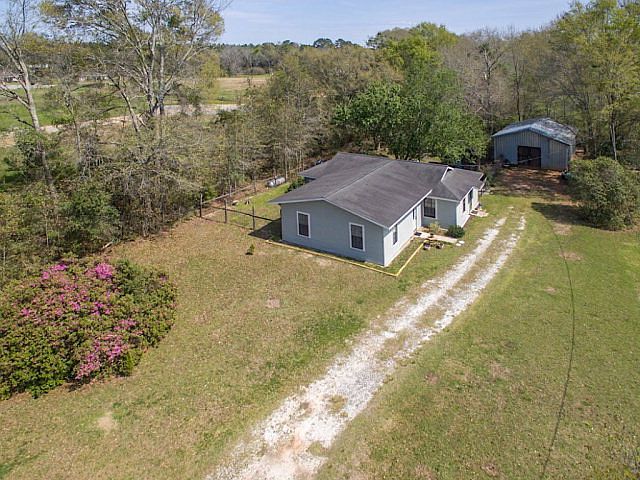 Incredible living space in main living area of this whimsical home located in Silverhill on a quiet one street subdivision. Easy commute to shopping, schools, beaches and much more. This home also offers a peaceful and cozy backyard that is great for entertaining. Do you need a workshop? 24x30 metal workshop with power offers plenty of space for all of your home projects! Ceramic tile flooring throughout, custom molding, fenced areas for animals, partially floored attic space, additional 12x12 storage building has electricity and area for a/c, newer siding on exterior of home. Home is clean and ready for new owner. Call and make your appointment today! (Header beam on west wall of living can support new entrance and porch area)