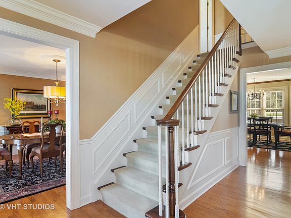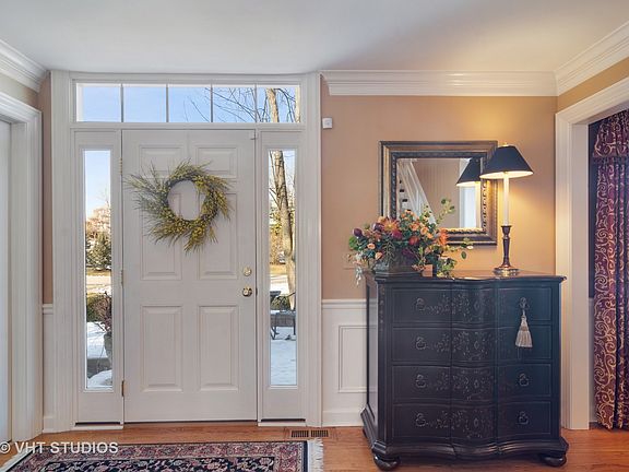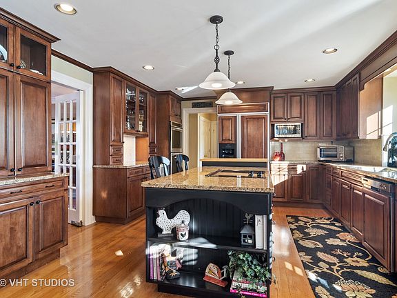 This home is perfect, all you need to do is move in! Neutral decor, beautiful tall windows, incredible storage, and desirable floor plan ideal for family living and entertaining guests. Rich wood flooring in the foyer flows into a spacious kitchen with ample cabinets, granite counters, center island and a large eating area with bay windows. A formal living room has French doors that open to a light-filled family room with beamed ceiling, custom brick fireplace, and triple glass doors out to a fantastic screen porch with vaulted ceiling and windows all around. Formal dining room, big 1st floor laundry room, study with built-in bookcases, and powder room. Upstairs, 4 spacious bedrooms include a master suite with vaulted ceiling and private bath with jetted tub, separate shower and dual vanity area. Everything is updated and beautiful. Full basement with even more finished space including seating and game areas plus a bar/mini kitchen with beverage fridge. Relax on the deck with built-in seating and the paver patio, both overlooking the deep and private back yard! New driveway, lovely landscaping, and a fantastic location close to parks, schools, transportation, shopping & fitness centers. Lake Zurich schools.