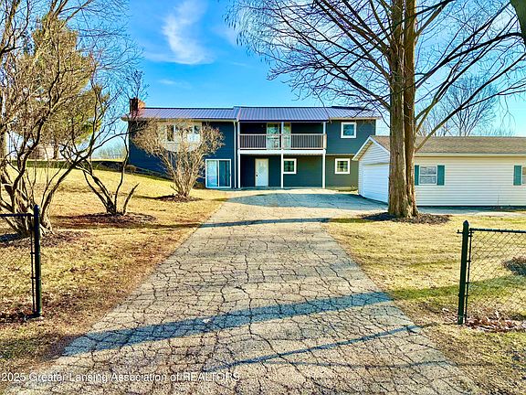 OLIVET SCHOOLS & country views await you at this quality 4 bedroom, 1.5 bath raised ranch. Home features a massive family room with a vaulted & beamed ceiling, wood fireplace w/ mantel. Natural light throughout & updated decor await your tour. Large eat-in galley kitchen w/ a slider to the rear deck. Larger bdrms, & updated baths are added bonus. The .69 acre lot is ideal as it features mature trees & fenced. A 24x30 garage along w/ ample paved parking make this an ideal location to call home. EZ access to both I-69 & I-94 for commuters yet with country views & privacy. This is a must see as value abounds. Special features include master balcony, attic fan, new steel roof, a bonus workshop/home office area(s), generator hook up & pride of ownership is evident.- LETS TOUR!